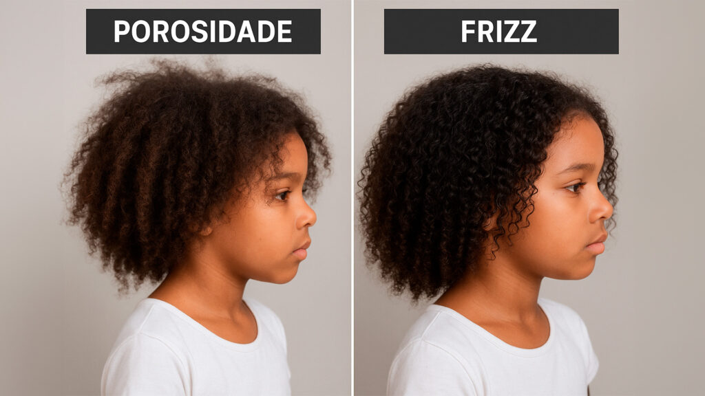Cuidar dos cabelos cacheados e crespos infantis exige atenção a cada detalhe da saúde dos fios. À primeira vista, porosidade e frizz podem parecer problemas semelhantes, mas, na prática, tratam-se de condições distintas que pedem cuidados específicos. Entender essa diferença é essencial para manter a beleza, o brilho e a definição natural dos cachos. Neste artigo, vamos mostrar para você Como Saber se o Cabelo Está Poroso ou com Frizz?